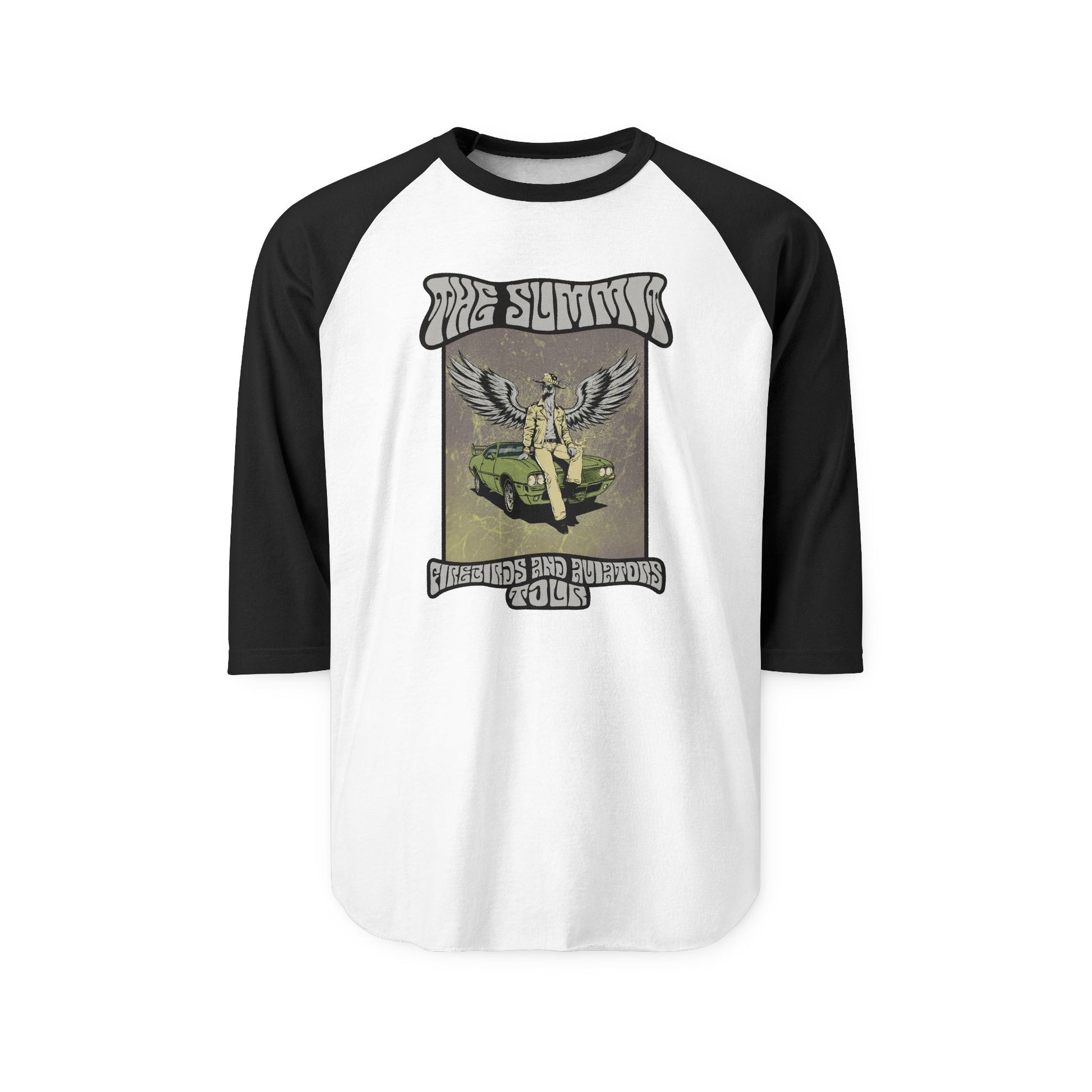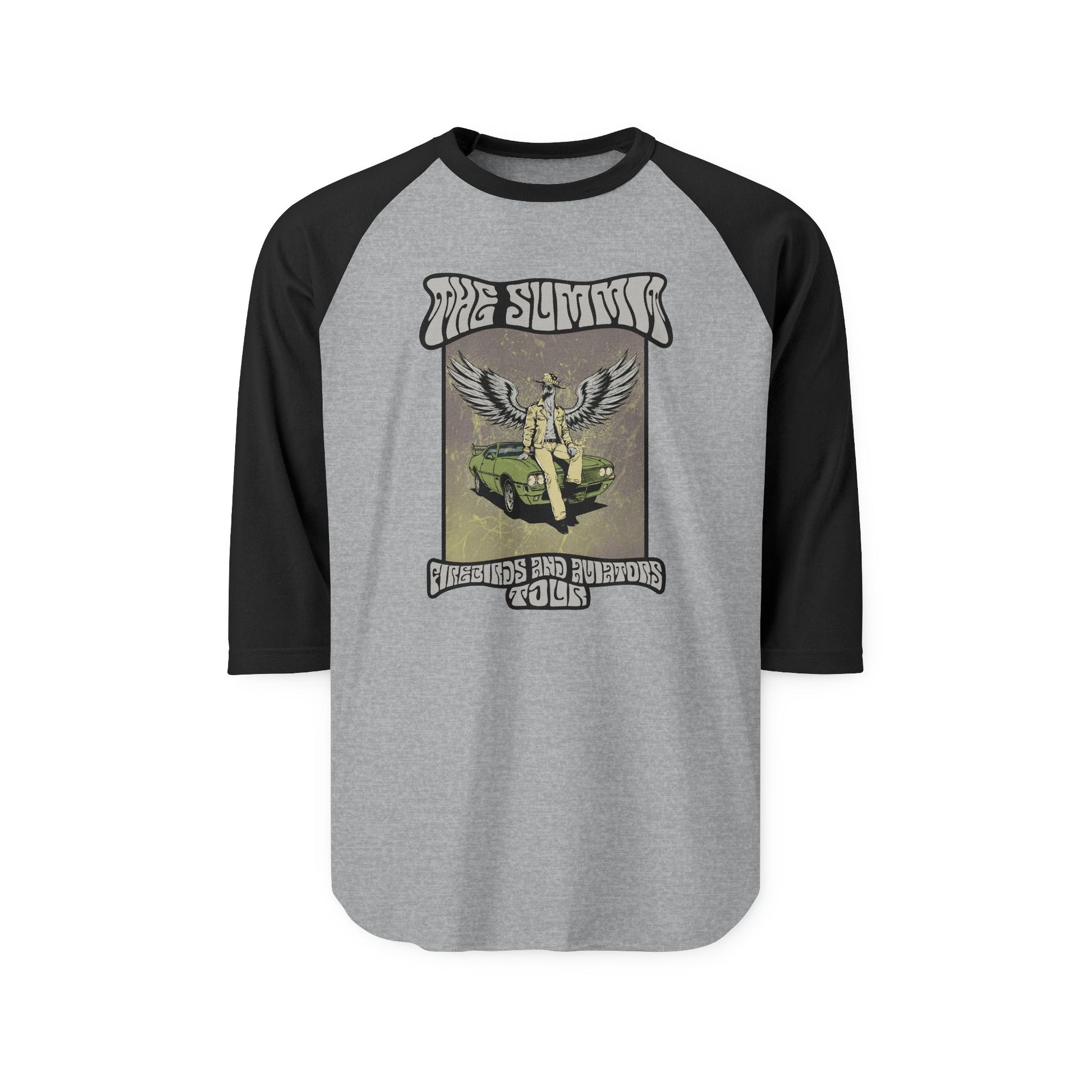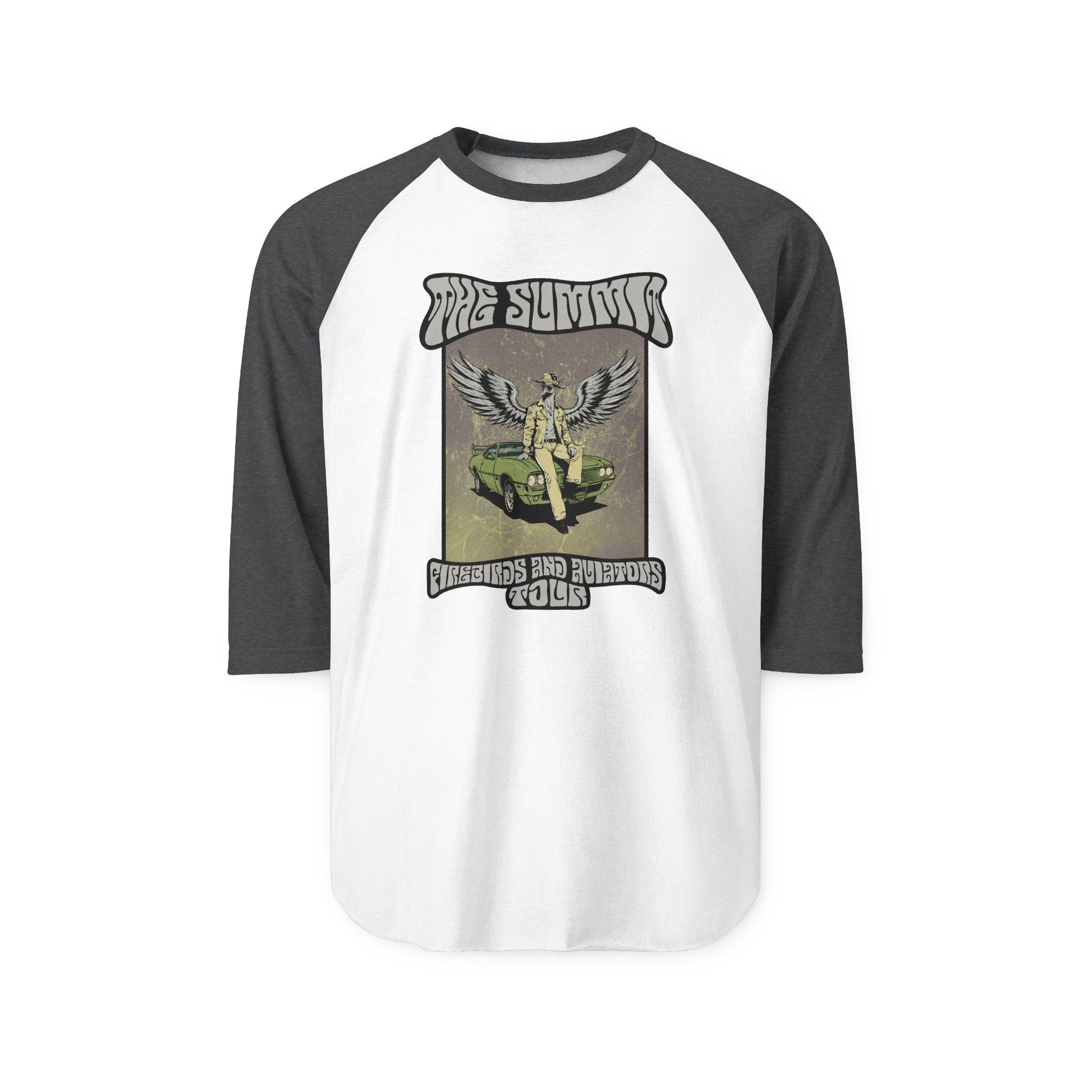 This 3/4 sleeve raglan tee features the full-color Firebirds & Aviators tour artwork — a bold, retro-styled graphic that captures the spirit, energy, and storytelling behind the album. Printed on a soft, lightweight fine-knit jersey, it delivers premium comfort with that worn-in, collectible-tour-tee feel.